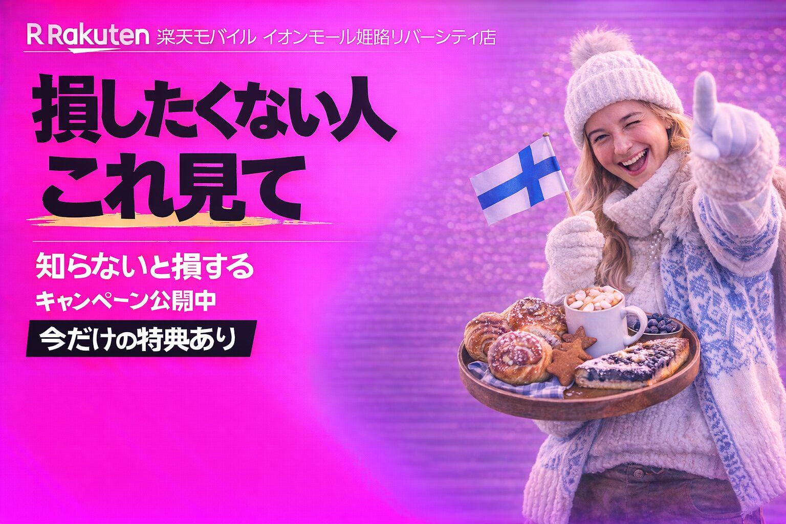 楽天モバイル イオンモール姫路リバーシティ店では、現在最大14,000ポイントがもらえるキャンペーンを実施中です。