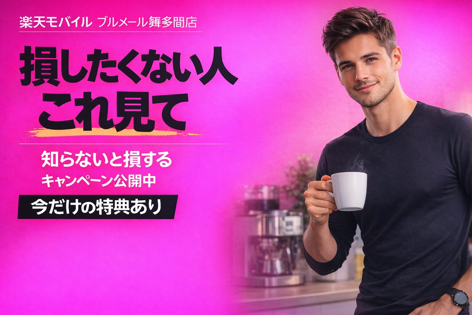 楽天モバイル ブルメール舞多聞店では、現在最大14,000ポイントがもらえるキャンペーンを実施中です。