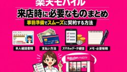 来店前の準備 楽天モバイルの店舗契約で必要なものは?来店前の準備と無料キャンペーンエントリーを解説 楽天モバイルを店舗で契約する際に必要なものをまとめました。本人確認書類やMNP予約番号、事前準備のポイントまで分かりやすく解説。スムーズに契約したい方は必見です。 来店前の準備