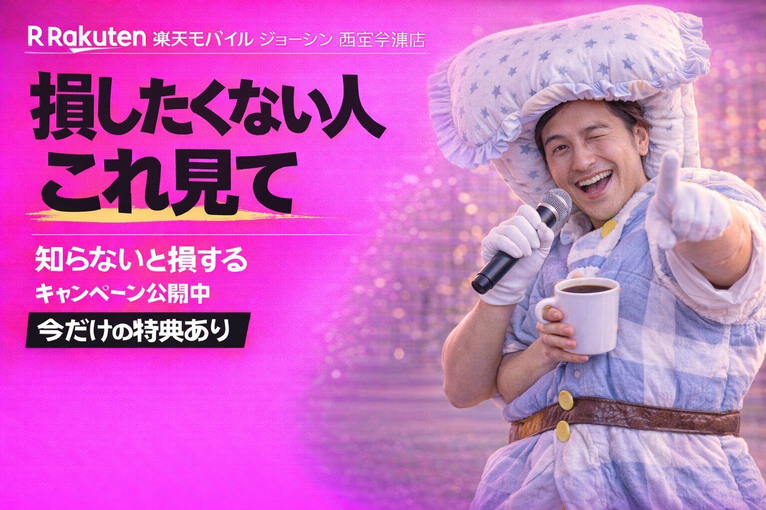 楽天モバイル ジョーシン 西宮今津店では、現在最大14,000ポイントがもらえるキャンペーンを実施中です。