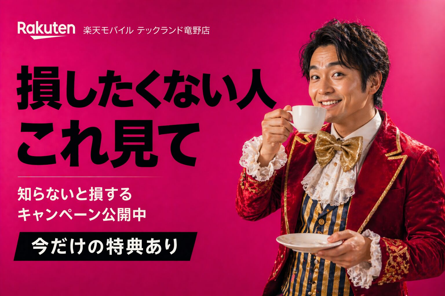 楽天モバイル テックランド竜野店では、現在最大14,000ポイントがもらえるキャンペーンを実施中です。